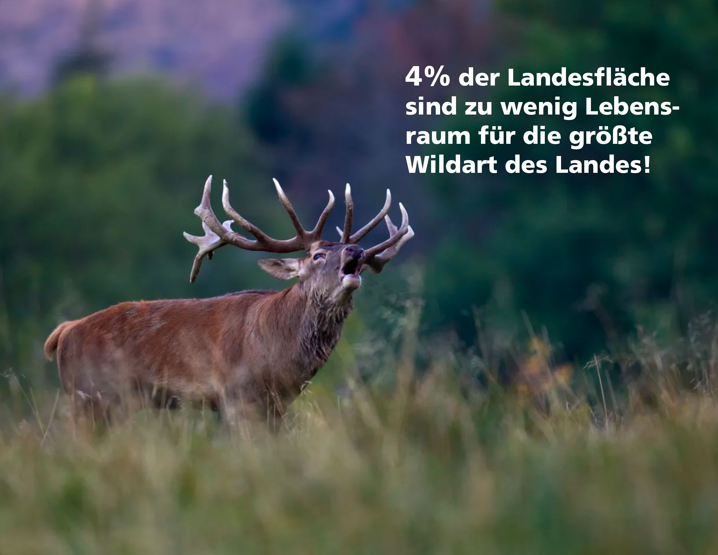 Der Landesjagdverband Baden-Württemberg e. V. fordert mehr Platz für das Rotwild. Wir finden 4 % der Landesfläche sind zu wenig Lebensraum für die größte Wildart des Landes.